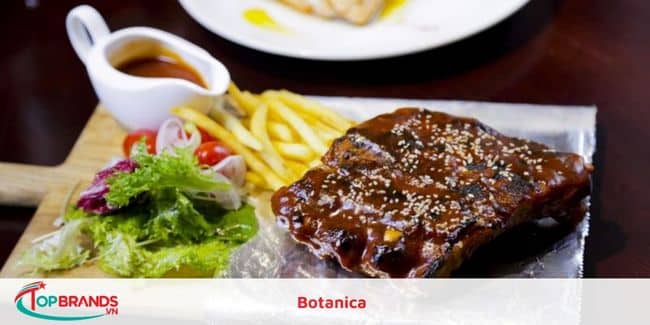 Tại nhà hàng Botanica phục vụ hai món nướng chính là sườn heo nướng và sườn cừu nướng. Sườn nướng được lựa chọn kỹ càng, nướng bằng tay, lớp da giòn và phần thịt bên trong vẫn giữ được trọn vẹn sự mềm mại, đó là những điều tuyệt vời nhất của Botanica. Sốt chấm ở đây cũng rất đa dạng gồm sốt BBQ đậm đà, sốt kem béo ngọt, sốt chanh dây chua ngọt, bạn có thể thoải mái lựa chọn theo sở thích.