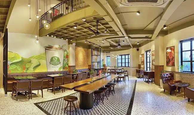 Không gian sang trọng lại được bài trí tỉ mỉ, gọn gàng, luôn luôn sạch sẽ đã là một điểm cộng lớn. Thêm nữa chi nhánh này còn sở hữu view cửa sổ siêu rộng, mở ra tầm view cực lớn, khiến khách hàng vừa uống trà vừa ngắm cảnh. Nếu trời mưa nghe tiếng mưa lách tách lại cực kỳ lãng mạn.