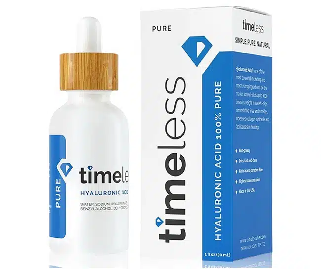 Đây là dòng serum cấp nước huyền thoại, nhắc đến ai cũng biết chẳng phải là Timeless Hyaluronic Acid. Đây là serum tầm trung nhưng có “siêu năng lực” cho da “uống no nước” nhờ vào cấu trúc dạng lỏng và thành phần chứa đến 1% Sodium Hyaluronate.