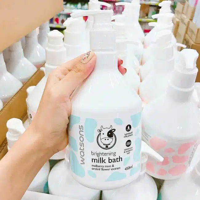 Watsons Milk Bath là dòng sữa tắm Thái cao cấp chứa những thành phần dịu nhẹ an toàn cho da và không gây hại hay kích ứng, phù hợp với tất cả các loại da kể cả da nhạy cảm. Watsons Milk Bath được sản xuất từ sữa bò và tinh chất hoa phong lan, dâu tằm nhằm cung cấp độ ẩm cho da và đều màu da, giúp da trắng sáng với màu tự nhiên.