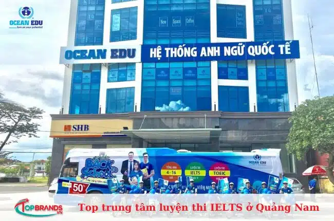 Trung tâm Anh Ngữ OCEAN là một trong những đơn vị đào tạo tiếng Anh uy tín nhất tại Quảng Nam. Nổi bật nhất của trung tâm là khóa học luyện thi IELTS được nhiều bạn học viên lựa chọn, với phương pháp giảng dạy hiện đại cùng lượng kiến thức và tài liệu chuẩn quốc tế.