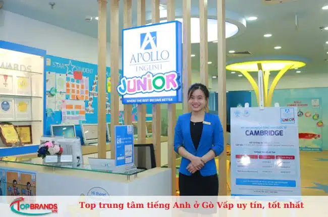 Trung tâm tiếng anh Apollo với 25 năm kinh nghiệm giảng dạy cùng nhiều chứng nhận quốc tế danh giá mà ít trung tâm nào sở hữu được nên được đánh giá cao trong những trung tâm uy tín ở Gò Vấp . Bên cạnh đó, các khóa học tại đây 100% giảng dạy theo tiêu chuẩn quốc tế, đội ngũ giảng viên là người có kiến thức sâu rộng đạt 3 bằng cấp đạt chứng chỉ TKT và CELTA, giảng dạy luyện thi các chứng chỉ như: IELTS, TOEIC. Apollo cũng là trung tâm tiếng anh dành cho trẻ em , số lượng học viên trung bình 14 – 15 học viên/ lớp để đảm bảo chất lượng cho học viên nơi đây. Tại Apollo, học sinh sẽ học theo nhóm, theo các nhóm tuổi khác nhau để sáng tạo hơn. Đặc biệt, khi học tập tại đây, sinh viên sẽ được ngồi ở một vị trí mở trên cơ sở ngẫu hứng để mang lại sự thân thiết và thoải mái khi học tập.