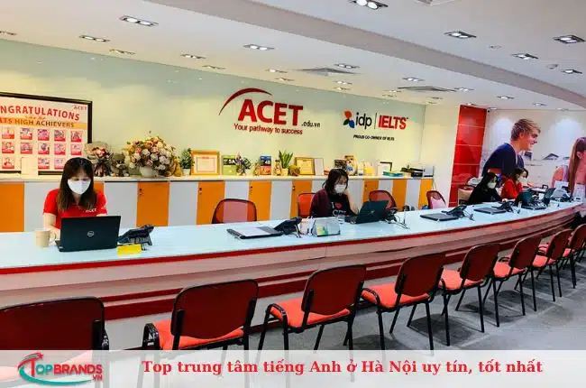 Trung tâm Anh ngữ ACET được thành lập vào năm 2002, đến nay đã hoạt động được hơn 20 năm và là một trung tâm tiếng Anh uy tín tại Hà Nội có chất lượng tốt. Tương tự với các trung tâm khác thì tại ACET, học viên cũng được cam kết trình độ đầu ra. Chương trình đào tạo ở đây cũng đa dạng: Anh văn thiếu nhi, Anh văn giao tiếp, Anh văn học thuật, Luyện thi IELTS. Bên cạnh đó, ACET còn áp dụng những phương pháp giảng dạy hiện đại, giúp học viên học tiếng Anh hiệu quả mà không cảm thấy nhàm chán.