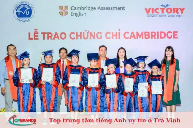 Thuộc trường đại học Trà Vinh, Trung tâm ngoại ngữ – tin học Victory là 1 trong những trung tâm tiếng Anh tại Trà Vinh được đánh giá cao với đội ngũ giáo viên, giỏi, tận tâm, năng động và có phương pháp học tập sáng tạo, hiệu quả. Ngoài ra còn có nguồn giáo viên nước ngoài đúng chuyên môn, tạo điều kiện tốt nhất để học viên giao tiếp tốt, phát âm chuẩn và nâng cao kỹ năng ngoại ngữ.