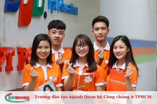 Trong danh sách các trường đào tạo ngành quan hệ công TPHCM chúng không thể vắng mặt Trường Cao đẳng FPT Polytechnic. Được biết Cao đẳng FPT là ngôi trường được thành lập 01/07/2010 theo Quyết định của Tổng cục dạy nghề. Chương trình đào tạo tại Cao đẳng FPT luôn hướng tới mục tiêu đào tạo nguồn nhân lực chất lượng với các kỹ năng nghề nghiệp có thể đáp ứng hoàn toàn những nhu cầu của xã hội, đảm bảo được tính cạnh tranh trong thị trường nhân lực trong bối cảnh hiện đại hóa như ngày nay.