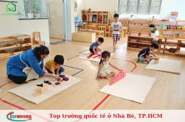 Homie Kids Montessori School ở huyện Nhà Bè cung cấp chương trình học toàn diện với phương pháp giáo dục Montessori, giúp trẻ phát triển bản thân một cách tự nhiên. Ngoài ra, trường còn có chương trình Anh ngữ với thời lượng học vượt trội và các giáo viên người nước ngoài giúp bé phát triển kỹ năng phản xạ tiếng Anh tốt và có vốn từ đa dạng.