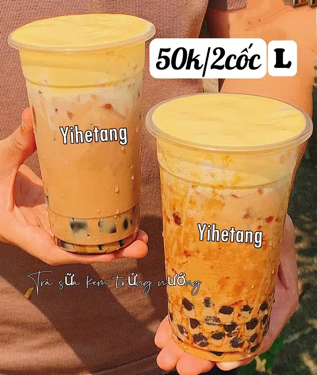 Trà sữa Yi He Tang nổi tiếng với món nước đặc trưng là Hồng trà nướng, đem đến cho thực khác hương vị trà đậm đà và thơm nức mũi. Trong quá trình ủ trà cần chuẩn 95 – 100 độ C và chờ trong 13 phút để có cốt trà đúng điệu, hòa quyện cùng chút ngọt béo của đường nướng theo công thức riêng. Trà sữa Yi He Tang là điểm đến vui chơi cuối tuần ở Hà Nội, nơi bạn có thể thư giãn và thưởng thức trà sữa cùng bạn bè.