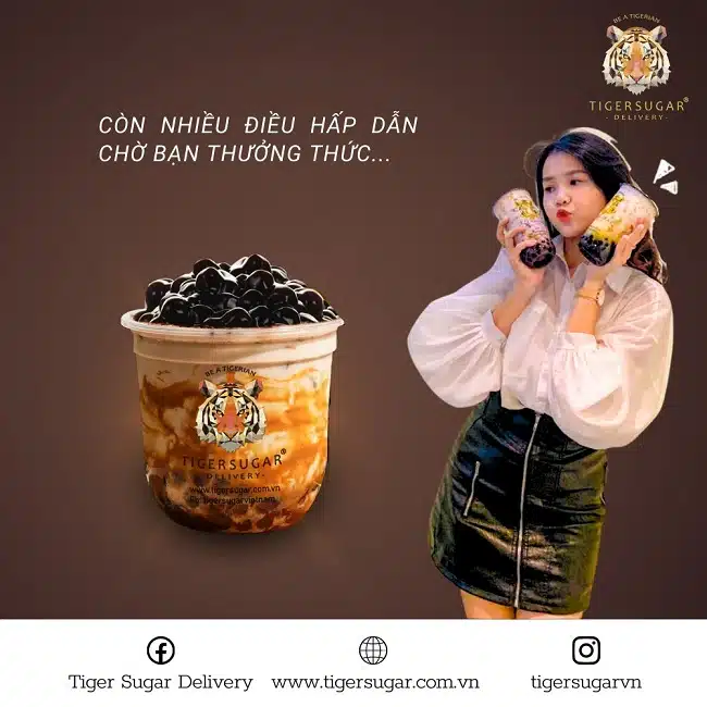 Tiger Sugar với menu đa dạng cùng những món uống độc đáo sáng tạo hấp dẫn nên thu hút đông đảo thực khách ghé đến thưởng thức. Một trong những món làm nên tên tuổi quán là sữa tươi trân châu đường đen, trân châu dai dai ngọt và thơm vị đường đen, sữa tươi beo béo. Xứng đáng là loại đồ uống “đỉnh của chóp” mà khách hàng có thể thử khi đến quán.