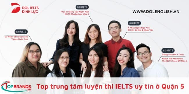 Nhắc đến trung tâm luyện thi IELTS nổi tiếng và uy tín tại Quận 5 không thể nào bỏ qua DOL English – Đình Lực được đâu nhé. Đây là Học viện Anh ngữ Tư duy đầu tiên tại Việt Nam. Tại DOL nhận ôn luyện thi các chứng chỉ như IELTS, TOEIC, SAT, GMAT, GRE độc quyền nhờ áp dụng phương pháp LinearThinking đồng thời có lộ trình học tập hợp lý, hiệu quả giúp học viên cải thiện điểm số nhanh chóng chỉ trong vòng 2 tháng, tiết kiệm tối đa thời gian, sức lực và tiền bạc.